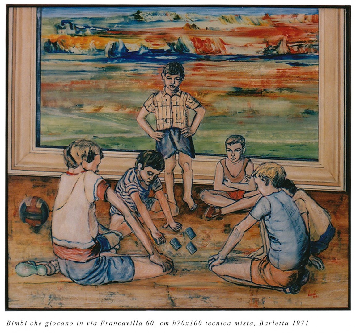 Il tema è l'acqua: una famiglia che poteva finalmente pagarsi l'allacciamento dell'acqua. Ricordi di infanzia. Ricordi di bambini, compagni di giochi e di terra. Quella terra amata, che presto il giovane Nunzio Quarto sarà costretto a lasciare, negli occhi lo stesso sguardo del Pierrot triste che guarda gli altri bimbi giocare, che più tardi dipingerà.