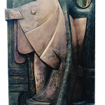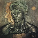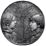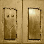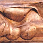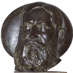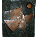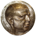 Autoritratto, bassorilievo, bronzo, cm 41x41x10, 1963